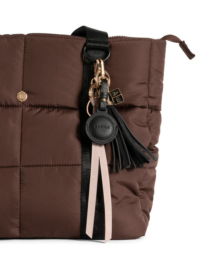 The PEBBLED AIR TAG CHARM blends function with polish. Crafted in premium vegan leather with hardware detailing, it’s designed to hold your Air Tag securely while elevating your everyday essentials.